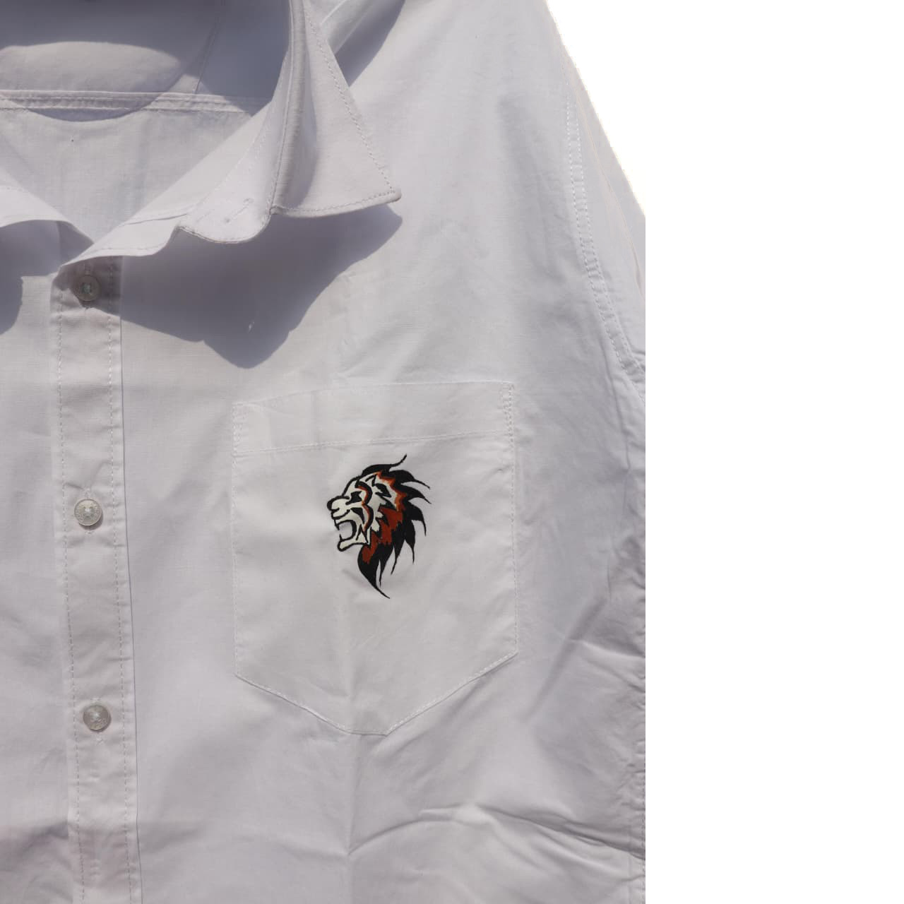 Premium quality white paper-cotton shirt with a stylish embroidered lion logo on the pocket. Lightweight, breathable and perfect for casual as well as semi-formal wear.